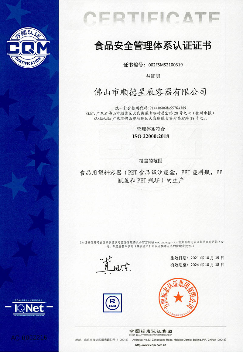 • 食品安全管理體系證書